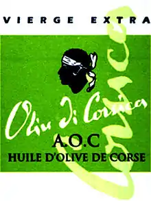 Depuis 2004 l'huile d'olive de Corse est protégée par une appellation d'origine contrôlée dont l'aire de production comprend 297 communes. L'appellation permet de garantir que l'huile achetée est produite à partir d'un verger local et selon des techniques de production qui respectent les « usages locaux, loyaux et constants[11]. ».