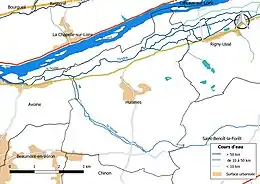 La commune est bordée par la Loire (0,145 km) sur son flanc nord et traversée par l'Indre (5,476 km), qui présente un parcours parallèle à la Loire. Le réseau hydrographique communal, d'une longueur totale de 21,65 km, comprend un autre cours d'eau notable, la Veude (5,597 km), et cinq petits cours d'eau dont le Goulet (0,988 km)[1],[2].