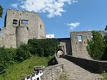 Le château fort de Hukvaldy a été construit au XIIIe siècle par les comtes rhénans de Hückeswagen, à cette époque envoyés à la cour des rois de Bohême, qui étaient également propriétaires du château voisin de Starý Jičín. Plus tard, les domaines faisant partie du margraviat de Moravie ont été transférés aux évêques d'Olomouc. Endommagé par un incendie en 1762, le complexe est aujourd'hui en ruines.