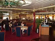 L'évolution de l'orientation du service se reflète clairement dans l'évolution consécutive de l'équipement des navires. Les nouveaux navires, construits dans les années 1950, disposaient de cabines encore relativement petites, constituées d'un simple lit sans salle de bains privative, d'une salle à manger et d'une cafétéria. Les navires de la génération intermédiaire disposaient déjà de cabines plus confortables, mais cependant toujours de dortoirs d'une capacité de dix places, qui ont aujourd'hui complètement disparu.