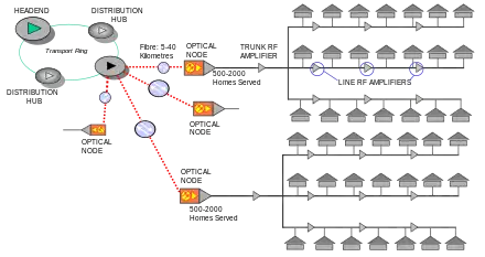 Cette technologie permet l'accès à internet à large bande, en utilisant les réseaux câblés de télévision existants. La topologie réseau est constituée de deux parties : la première consiste à connecter le modem câble de l'abonné au travers d'un câble coaxial à un nœud zonal et ensuite à interconnecter les nœuds au concentrateur CMTS (Cable Modem Termination System) du FAI via de la fibre optique. Le transfert de données (accès à Internet) sur ce type de réseau hybride est standardisé par les normes DOCSIS.