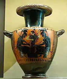 L’hydrie des mystères d’Éleusis présente une scène illustrant le culte des mystères d'Éleusis.