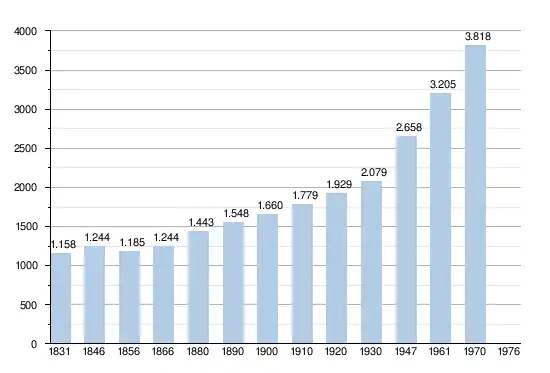 - Sources : INS, Rem. : 1831 jusqu'en 1970 = recensements, 1976 = nombre d'habitants au 31 décembre.