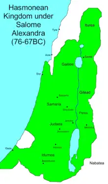 La nomination d'Hyrcan II à la charge de grand-prêtre intervient dans le violent conflit qui oppose sadducéens et pharisiens. De même que Jean Hyrcan, Alexandre Jannée « favorable à la secte des Sadducéens[1] » avait « persécuté » les pharisiens qui, fortement opposés à lui, avaient appelé le roi séleucide de Syrie Démétrios III pour qu'ils viennent le renverser[2]. Après avoir repoussé les envahisseurs[2], il avait fait crucifier huit cents pharisiens, faisant égorger leurs femmes et leurs enfants devant les crucifiés pendant leur supplice, alors que lui-même et ses concubines assistaient à la scène comme à un spectacle tout en banquetant. À sa mort, Alexandre Jannée (« le vieux lion ») lègue la royauté à sa femme Salomé Alexandra (). Alors qu'Alexandre Jannée « avait embrassé le parti des Sadducéens et d'autres groupes sacerdotaux qui s'étaient rangés à ses côtés, la reine s'allia aux Pharisiens. La raison de cette volte-face était purement politique. Sachant qu'elle ne pourrait pas plaire en même temps aux Sadducéens et aux Pharisiens, Salomé-Alexandra, qualifiée par Josèphe de reine prudente et énergique mais un peu naïve, choisit tout simplement le camp le plus utile à sa cause[2]. » On ne sait s'il faut croire Flavius Josèphe, pour qui c'est Alexandre Jannée lui-même qui peu de temps avant sa mort, aurait suggéré cette tactique à sa femme.