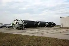 Un R-36MUTTH, code OTAN SS-18 mod. 5, au musée des forces stratégiques. Cet engin soviétique est le plus lourd missile conçu jusqu’à présent avec sa masse de 210 t.