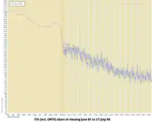 En 2010, ITV est la deuxième chaîne du Royaume-Uni, derrière BBC One avec 16,8 % de parts d'audience (contre 21,1 % pour la chaîne publique). Ses audiences sont en baisse constante malgré la présence de programmes populaires tels que Britain's Got Talent ou The X Factor[4].