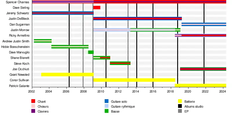 - Spencer Charnas - chant, claviers (depuis 2002), guitare rythmique (2002-2009)