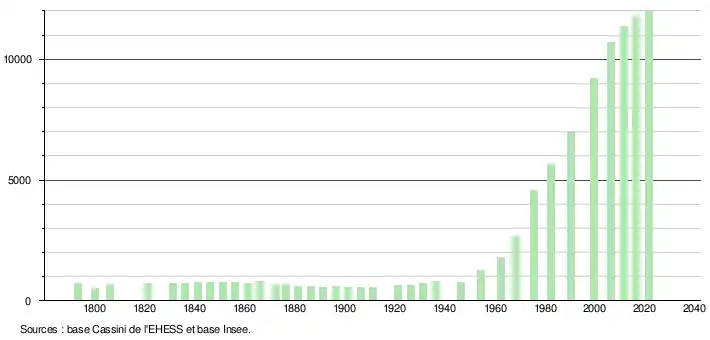 L'évolution du nombre d'habitants est connue à travers les recensements de la population effectués dans la commune depuis 1793. Pour les communes de plus de 10 000 habitants les recensements ont lieu chaque année à la suite d'une enquête par sondage auprès d'un échantillon d'adresses représentant 8 % de leurs logements, contrairement aux autres communes qui ont un recensement réel tous les cinq ans[35],[Note 4].