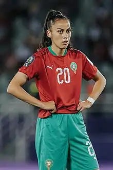 En février 2021, elle reçoit une première convocation en équipe du Maroc[37] pour un stage au Centre Mohammed VI.