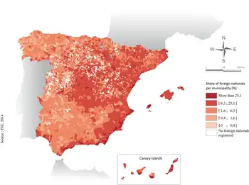 Le dynamisme qu'a montré l'économie de l'Espagne se trouve à l'origine de la forte croissance de l'immigration étrangère. Depuis l'an 2000, l'Espagne montre un des plus grands taux d'immigration au monde (de trois à quatre fois plus que le taux des États-Unis, huit fois plus que celui de la France et n'a un taux inférieur qu'à ceux de Chypre et Andorre en Europe en proportion) et a été le second pays après les États-Unis à accueillir un grand nombre d'étrangers.
