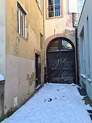 Entrée de l'impasse à l'angle du no 18 de la rue des Charpentiers. | |