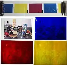 Le ruban encreur, très fin, comporte des séquences de quatre zones, chacune aux dimensions du papier photo utilisé : trois zones de couleur (jaune, magenta, cyan) et un vernis protecteur (pour préserver la photo des UV, de l'humidité et des traces de doigts). Une fois une couleur traitée, on passe à la suivante, pour finir par le vernis. Si, par exemple, le ruban est prévu pour quarante photos, il y aura quarante séquences jaune, magenta, cyan, vernis protecteur. Après usage, le rouleau n'est plus utilisable. Le nombre de tirages possible est ainsi déterminé à l'avance.