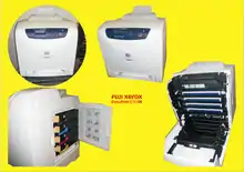 - Les imprimantes laser couleur fonctionnent selon le même principe, en répétant les phases d'insolation et de transfert avec du toner coloré (souvent, mais pas exclusivement, du cyan, du magenta et du jaune, voir quadrichromie) en plusieurs passes (un rouleau photosensible, quatre toners), ou sur certains des modèles les plus récents, en une seule passe (quatre rouleaux photosensibles, quatre toners).