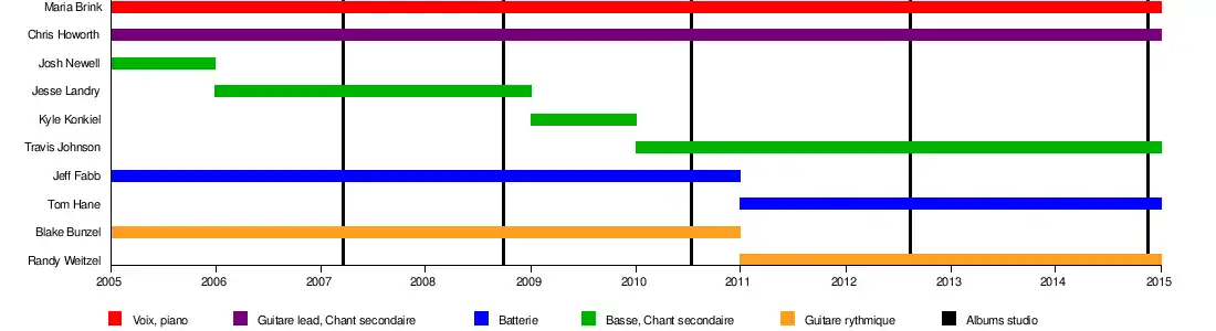 - Blake Bunzel – guitare rythmique, chant secondaire (2005–2011)