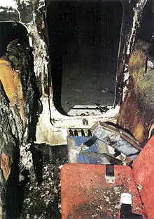Alors que l'avion commençait à tourner à droite hors de la piste, environ 10 secondes avant son arrêt, l'un des deux agents de bord à l'arrière a ouvert la porte arrière droite, mais personne ne s'est échappé par cette porte car elle était bloquée par la fumée et par les flammes[AAIB 17]. La sortie arrière gauche est restée fermée[AAIB 18]. Lorsque l'avion s'est immobilisé, il faisait face au nord-ouest et un vent léger de 6 à 7 nœuds (11 à 13 km/h) soufflait de l'ouest.