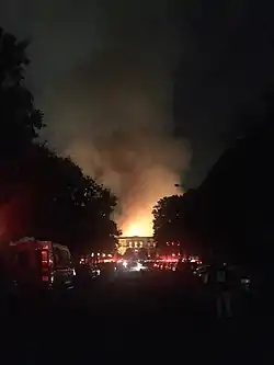 Le , passée l’heure de fermeture du musée pour les visiteurs, un incendie de grande ampleur se déclare et s’étend bientôt aux trois niveaux du palais de Boa Vista dans lequel est hébergé le musée national à Rio de Janeiro[11]. Les sapeurs-pompiers sont mobilisés à 19 heures 30[12] et arrivent rapidement sur les lieux[7].