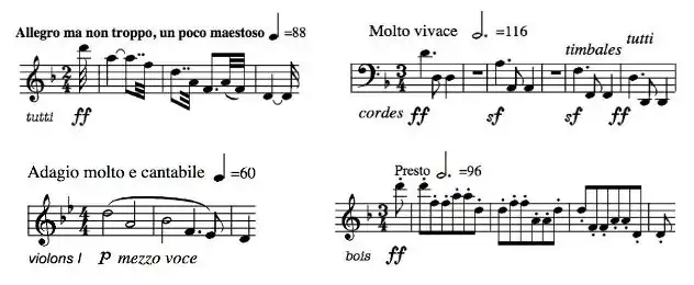 incipit de chaque mouvement de la Symphonie nº 9 de Beethoven.