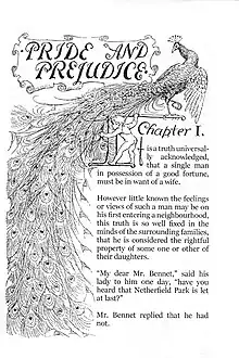 - « C'est une vérité universellement reconnue qu'un célibataire pourvu d'une belle fortune doit forcément être en quête d'une épouse ». Cet incipit célèbre est une parodie du raisonnement philosophique appliqué à une réalité banale à l'époque : le lecteur, invité à comprendre par antiphrase que les jeunes filles sans fortune sont désespérément à la recherche d'un mari fortuné, doit s'attendre à une satire des conventions sociales.