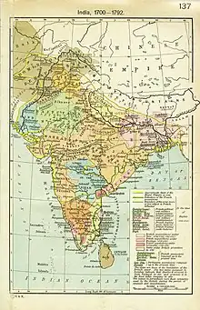 Les Britanniques rencontrent encore une forte résistance de Haidar Alî, sultan de Mysore, jusqu'en 1782, de l'Empire marathe jusqu'en 1819, de l'Empire sikh du Penjab jusqu'en 1849.