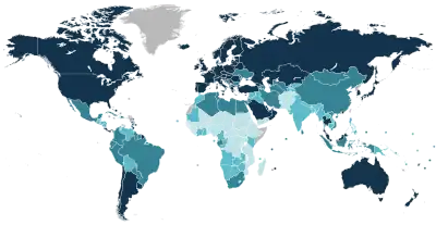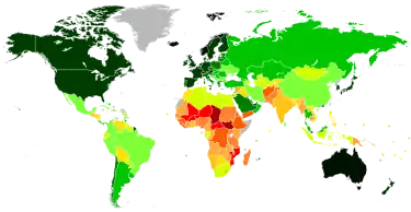 | Moyenne mondiale | 0,732[7] | La moyenne mondiale n'est pas la même que la moyenne de tous les IDH. |
