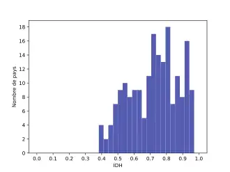 | Médiane | 0,739 | La moitié des pays ont un IDH supérieur à 0,739, l'autre moitié un IDH inférieur. |