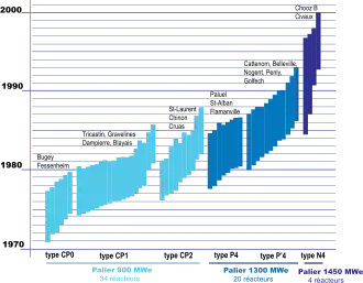 Le centre de Cadarache, près de Manosque, est créé en 1960. Il permettra l'édification des centrales à partir de la deuxième et de la troisième générations de réacteur à eau pressurisée (REP). Cette filière de production sera choisie par le gouvernement Jacques Chaban-Delmas pour équiper la France, et sera exploité en France à partir de 1977.