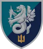 Emblème de l'infanterie navale ukrainienne : un glaive ailé doré sur une ancre argentée. | |