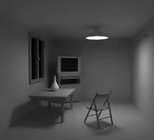 - La radiosité (ou radiance) calcule les échanges d'énergie lumineuse entre éléments de surface de la scène en tenant compte de leurs propriétés de réflexion et d'absorption. Cela nécessite de décomposer la scène en éléments finis de surface. Cela permet des éclairages naturellement doux. Cette technique associée au lancer de rayons et à d'autres voisines permettant les inter-réflexions est une technique d'illumination globale.