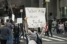 L'« une des plus grandes défaillances de l'histoire des médias américains »[91],[92] a eu lieu entre les attentats du 11 septembre 2001 et l'invasion de l'Irak fin 2003[93], cette période donnant aux infox une ampleur nouvelle, selon l'écrivain et éditeur australien Jeff Sparrow. Cette période a connu plus d'un million de morts, des déplacements massifs de réfugiés dans le monde, l'apparition de l'État islamique et a coûté plus de mille milliards de dollars.