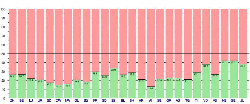 Soumise à la votation le , l'initiative est refusée par tous les cantons et par 72.5 % des suffrages exprimés. Le tableau ci-dessous détaille les résultats par cantons[7] :
