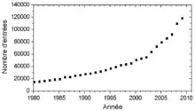 | Titre | Nombre d'entrées | Pourcentage (représenté sur 10 %) |