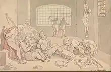 - La garrucha ou estrapade : la victime est hissée lentement à l'aide d'une poulie en haut d'un mât et suspendue ainsi par ses poings liés dans le dos puis on la laisse tomber violemment par saccades sans toucher le sol afin que ses articulations se disloquent. Si le poids du torturé est trop léger, on ajoute un poids pour alourdir l'ensemble[34].