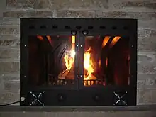 L'ajout de bûches dans le foyer se fait par la porte vitrée en l'ouvrant sur l'avant ou pour d'autres modèles, en relevant la vitre par un système de crémaillère[5]. La vitre faite de vitrocéramique résiste à des températures de 750 °C.