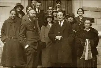 Portrait de groupe avec Pierre Bovet et Jean Piaget devant l’Institut en 1925.