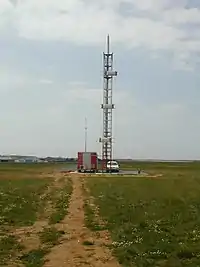 Le radiophare d'alignement de piste (en) est constitué d'un ensemble d'antennes situées après le bout de la piste qui émettent une porteuse VHF entre 108 et 111,975 MHz, première décimale impaire (111,75 MHz pour la piste 26 à Orly par exemple).