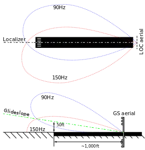 Elle est modulée par 2 basses fréquences, l'une à 90 Hz et l'autre à 150 Hz. À droite de l'axe de la piste, le taux de modulation du 150 Hz est supérieur à celui du 90 Hz et inversement à gauche de l'axe. La différence de taux permet d'en déduire un écart qui est affiché sur le récepteur de bord.