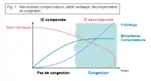 Les mécanismes compensateurs contribuent donc à soutenir le débit cardiaque (augmentation de la fréquence cardiaque, de la contractilité et de la précharge) et la perfusion tissulaire (augmentation de la postcharge) lors d’une baisse de la performance cardiaque (cardiopathie) et sont donc à court terme bénéfiques. Cependant, leur activation augmente la dépense énergétique du myocarde et ces mécanismes s’avèrent rapidement délétères à long terme, en contribuant à la progression et l’aggravation de la cardiopathie. La performance cardiaque chute alors de plus en plus, et les mécanismes compensateurs s’amplifient progressivement.