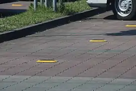 - Une étiquette physique ou virtuelle pour identifier les objets et les lieux. Quelques systèmes d'étiquetage sont décrits ci-dessous. Pour permettre aux étiquettes physiques plus petites d'être localisées elles doivent être embarquées dans des marqueurs visuels.