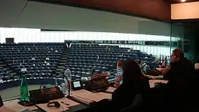 Afin de permettre aux experts des différents États membres de participer aux réunions de l'Union Européenne, la Direction Générale de l'Interprétation, (aussi connue comme SCIC – Service Commun Interprétation-Conférences[16]) assure l'interprétation pour la Commission européenne, le Conseil de l'Union européenne (officieusement appelé « Conseil de ministres »), le Comité économique et social, le Comité des régions, la Banque européenne d'investissement et d'autres organes de l'Union européenne[17]. La Cour de justice a sa propre Direction de l'interprétation[18]. Le Parlement européen a aussi son propre service d'interprétation (DG LINC).