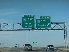 | 95,74 | 154,08 | 95A-B | Terminus nord, terminus nord du multiplex avec US 81; indiqué sortie 95A (I-70 es) et 95B (I-70 ouest); sortie 250A-B de l'I-70; l'autoroute continue vers le nord via US 81 | |||