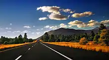 • Dans le film d'animation Cars, le héros, Flash McQueen, se retrouve coincé dans une petite ville fictive, Radiator Springs, située sur le tracé de la Route 66 et ayant perdu son dynamisme depuis l'aménagement de l'Interstate 40, que McQueen a quitté par erreur à la suite d'un incident.