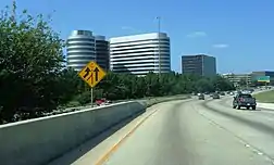- Quatre voies en direction nord, cinq voies en direction sud entre la sortie de Bellaire Boulevard et Woodway Drive