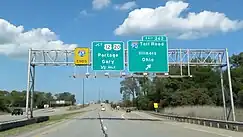 | Gary | 259,06 | 416,92 | 259 | Indiqué sortie 259A (ouest) et 259B (est); sortie 11 de l'I-80 / I-94 est et 12 de l'I-80 / I-94 ouest | ||