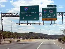 | 177,20 | 285,20 | 176 | Terminus nord du multiplex avec US 501; indiqué sortie 176A (Gregson Street) et 176B (Roxboro) | |||