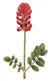 Hedysarum alpinum, dont la racine renflée est comestible.
