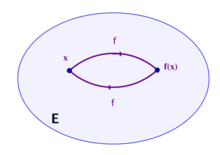 Une application f de E dans lui-même est une involution si et seulement si elle est bijective et telle que f−1 = f (l'image et l'antécédent de tout élément de E coïncident).
