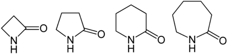 Les lactames sont une famille de composés organiques. Ils sont caractérisés par une fonction amide incluse dans un cycle carboné.