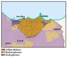 - Imazujen ou Imazuzen (Mazzuza en arabe), regroupe les habitants de Nador, Farkhana, Ibaraqan ainsi que l'enclave espagnole de Melillia. "Imazuzen" est le pluriel de "Mazuz", qui signifie "Benjamin".