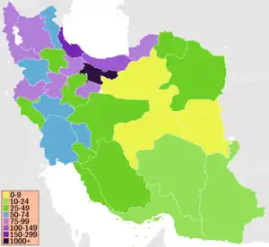 Les principaux problèmes environnementaux en Iran sont : la pollution de l'air, particulièrement dans les zones urbaines, liée aux émissions des véhicules, aux opérations de raffinerie et aux effluves industriels ; la déforestation ; la désertification[46] ; la diminution de la surface des marais à cause de la sécheresse ; la pollution par le pétrole dans le golfe Persique (due aux opérations d’extraction et de dégazage) ; la pollution de l'eau causée par les rejets industriels et les rejets non contrôlés des eaux usées. Le lac d'Ourmia[47] et l'Arasbaran[48]. La superficie du lac d'Ourmia, reconnu par l'UNESCO comme réserve de biosphère, régresse depuis la construction dans les années 1980 de nombreux barrages sur les rivières tributaires du lac afin de drainer les terres agricoles. Son taux de salinité augmente, la végétation et l'agriculture riveraines déclinent alors que le plancton se raréfie[49]. La qualité de l’air constitue un problème important, particulièrement à Téhéran. L'Iran est le neuvième plus important émetteur de dioxyde de carbone au monde avec 646 millions de tonnes en 2019[1]. Le monoxyde de carbone représente une partie importante des 1,5 million de tonnes de produits polluants rejetés à Téhéran en 2002. La préservation de l’environnement en Iran est essentielle afin de réduire et de résorber les dommages causés à des écosystèmes très fragiles[40]. Cela est une préoccupation dans les années 1950, à la suite des dégradations environnementales et de la surexploitation des ressources naturelles. L’Iran se dote d’une association de la vie sauvage en 1956, puis d’une organisation de la chasse et de la pêche en 1967 et d’un ministère de l’Environnement en 1971. Le but de ces organisations est la protection de l'environnement.