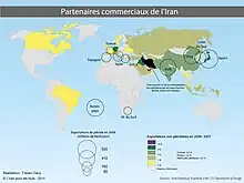 L'Iran compte 82 801 633 habitants[1]. La langue officielle est le persan et des minorités parlant azéri, kurde, lori, guilaki, soureth, baloutchi, mazandarani, kachkaï et arabe[1] peuplent certaines des 31 provinces. La capitale est Téhéran. Le calendrier officiel est le calendrier persan. L'Iran est la 28e puissance économique mondiale selon le produit intérieur brut (PIB) nominal et la dix-huitième selon le PIB à parité de pouvoir d'achat (2015). Le PIB par habitant s’élève à 11 200 $US (2011)[1]. Membre de l'Organisation des pays exportateurs de pétrole (OPEP), c'est un important producteur de pétrole à l'échelle mondiale. Il dispose de la plus grande réserve de gaz naturel. La monnaie est le rial.